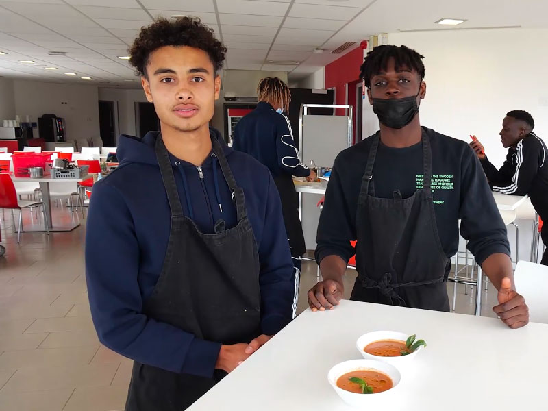 Tous en cuisine ! Les Pros 2 ont pris possession des fourneaux le temps d’un midi au centre Raymond Kopa. Du choix des aliments en passant par l’élaboration des plats jusqu’à la dégustation finale, nos jeunes Stadistes ont appliqué à la lettre les recettes de la nutritionniste du club !